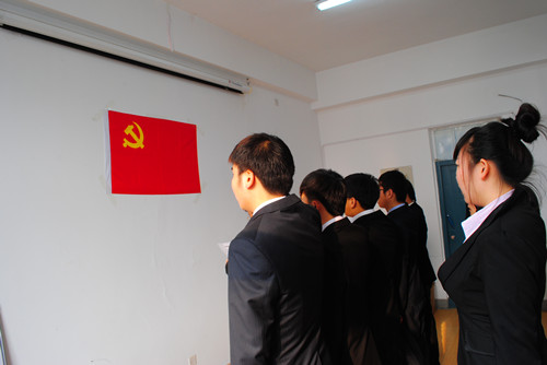 大会在国际歌的伴奏中拉开序幕。大会第一项,讨论刘峰等五位预备党员的转正问题。由刘峰等五位同志宣读自己的转正申请,其入党介绍人分别介绍其在一年预备期间的情况,与会正式党员举手表决并取得全票通过。大会第二项,讨论魏星等十位同志的发展问题。首先由魏星等十位同志宣读自己的入党志愿书,由其入党介绍人介绍申请人在培养期间的情况,与会正式党员举手表决并取得全票通过。然后,由新发展的十名预备党员面对党旗庄严地宣誓。