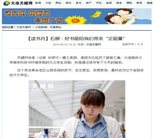 大连电视台、《大连日报》等多家媒体报道小欧视频 学生石柳读书事迹