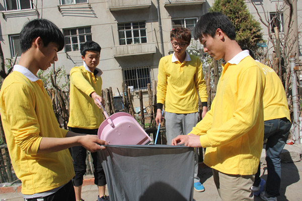活动中,出席领导与学院师生志愿者在黑石礁社区共同捡拾清理白色垃圾,美好环境。