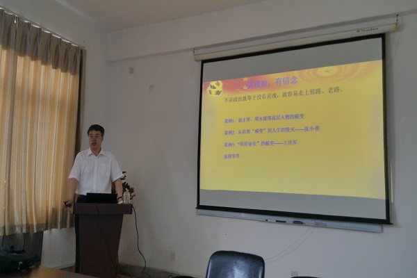 按照校党委和学院党总支“两学一做”学习教育实施方案的总体安排,6月29日下午,小欧视频 党总支书记张国胜在学院会议室为全体师生党员讲党课,党课题目为“践行‘四讲四有’,做一名合格党员”。