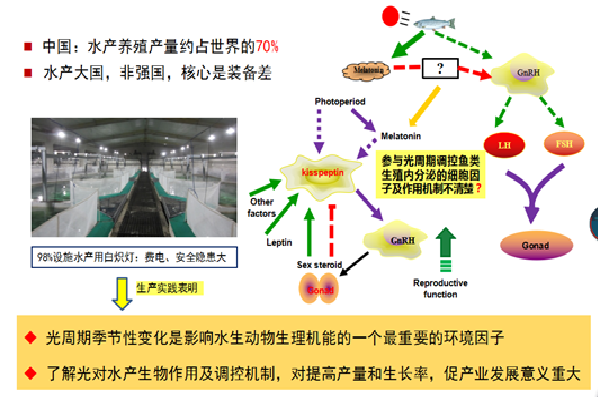 项目针对半导体照明(LED)光调控设施养殖家禽与水产动物生长发育和品质需求,系统研究LED光要素对肉鸡、鱼虾等设施养殖条件下的繁殖、生长、品质调控的光生物学作用机理,生物新陈代谢、行为特征等效用规律,填补国内在该领域的研究空白,研制适用动物健康养殖需求的专用LED光照和自动调控系统,为我国LED技术产业开辟新的应用领域和市场,通过技术集成与产业化示范,推动设施养殖业向可控、优质、高效方向发展。