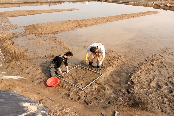 口虾蛄Oratosquilla oratoria ,俗 称“虾爬子”或“皮皮虾”,是一种多年生的具较高经济价值的甲壳类动物,广泛分布于中国、日本和朝鲜沿海,一直是近海渔业作业的主要品种之一。近年来由于捕捞强度大、海域环境恶化、栖息地被破坏等原因,其资源量已明显下降。刘海映教授2002年开始进行口虾蛄基础生物学研究,2009年带领团队突破了口虾蛄生态苗种繁育技术,之后一直为实现口虾蛄池塘人工养殖进行着不懈努力。今年5月起,团队与大连富谷食品有限公司合作,在1500平方米池塘开展了口虾蛄生态苗种繁育与池塘养殖试验研究。团队成员克服了低温、敌害等多种不利因素的影响,口虾蛄池塘养殖获得了初步成功,为丰富沿海池塘养殖种类提供了技术储备。