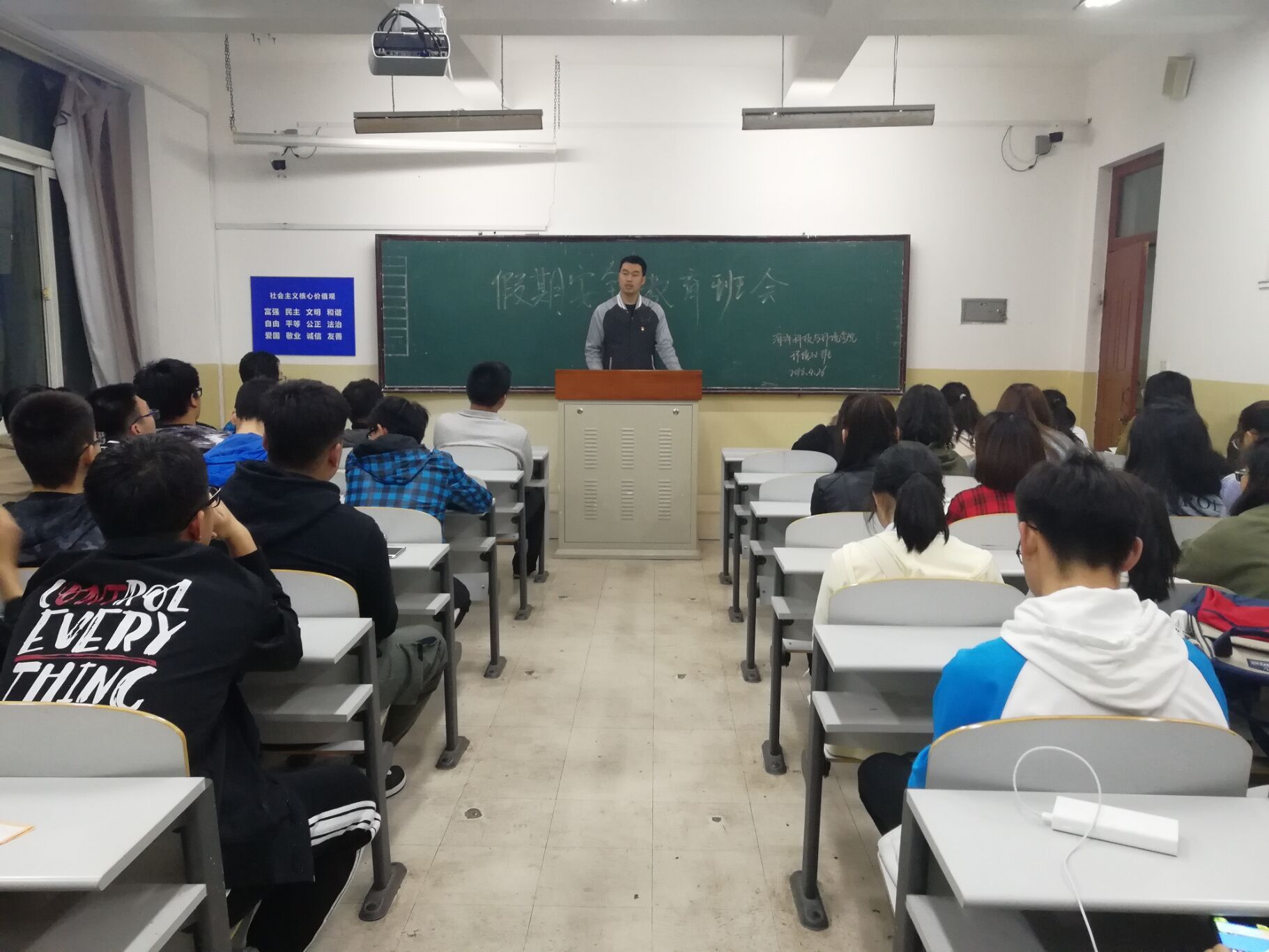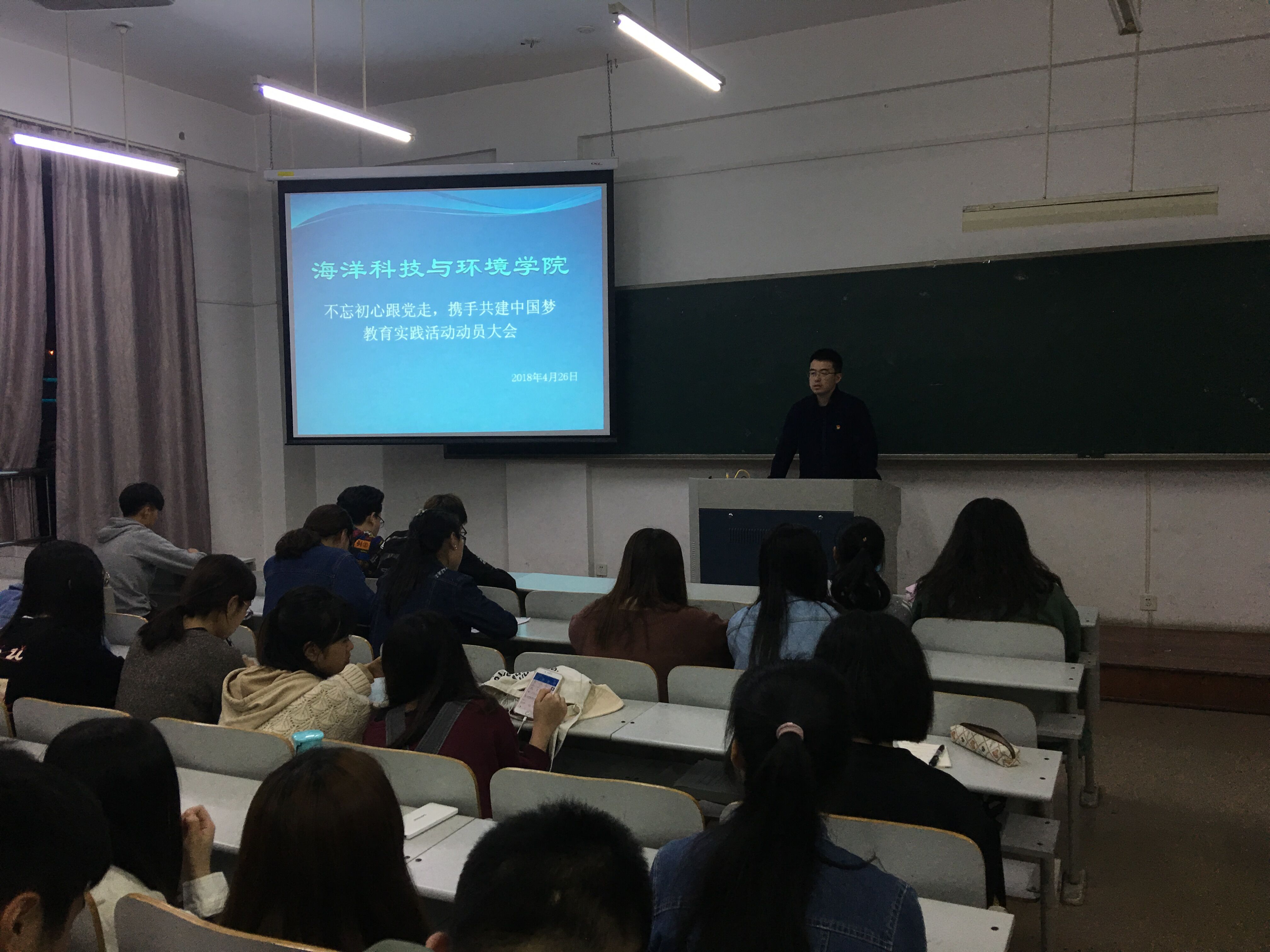 本次班会,一方面是将学校五一假期安全通知向全体学生进行传达,叮嘱学生在放假期间注意人身财产安全,不从事与当代大学生身份不符的活动。另一方面将学校《关于在全校集中开展“不忘初心跟党走,携手共筑中国梦”教育实践的通知》对学生进行详细的解读,并动员学生认真、深入地开展实践活动,在实践中深入学习贯彻党的十九大精神,增长才干。
