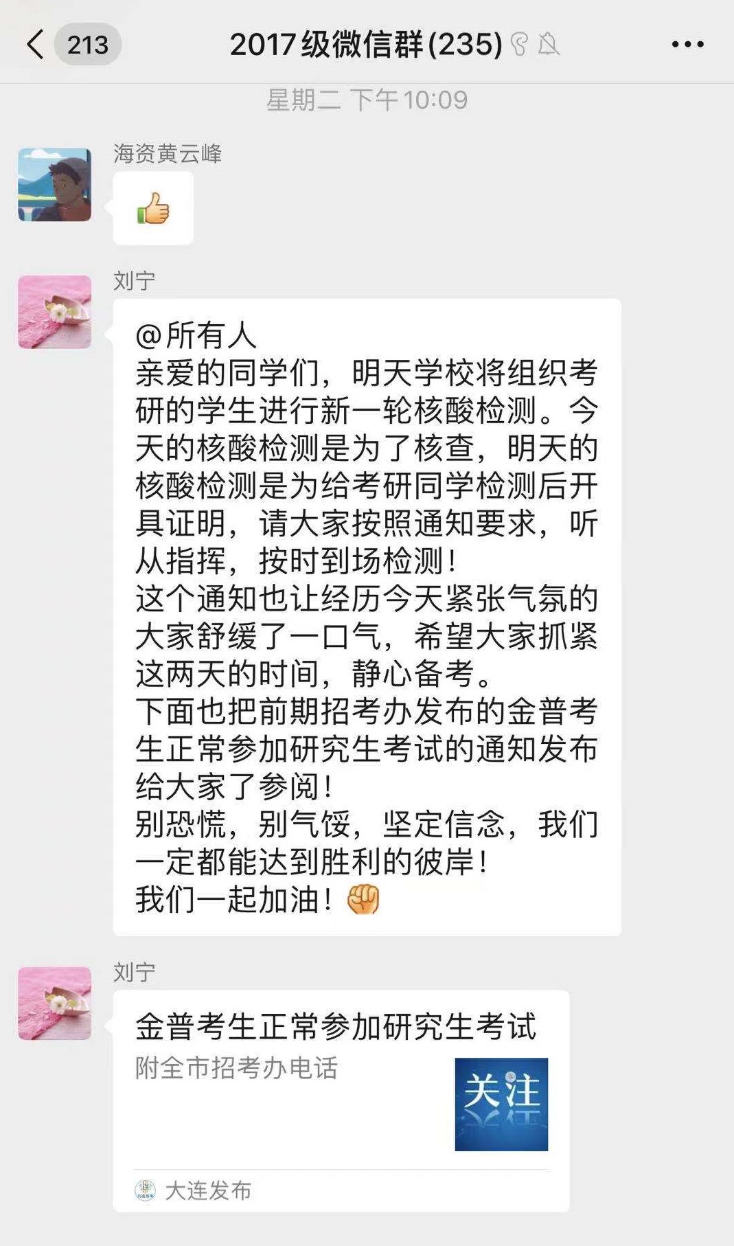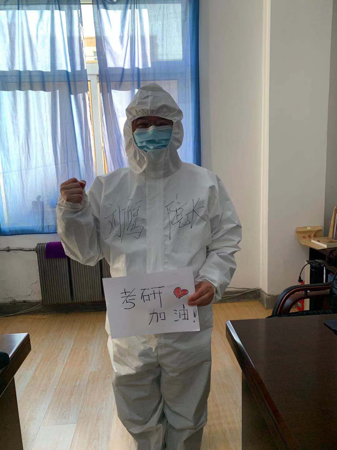 刘鹰院长和辅导员老师一起把应试袋送到考研宝宝手里,送上老师们的祝福和叮嘱,海环考研人,盼你们凯旋,加油!