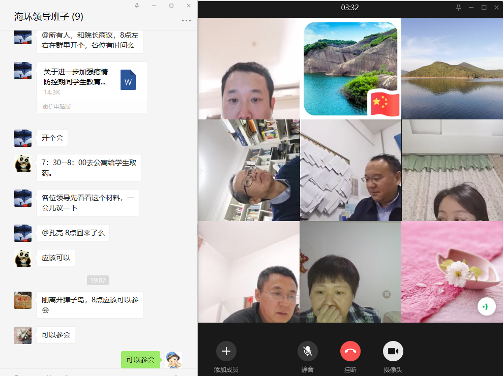 学院领导班子不定时召开线上会议,通报相关工作进展和突发情况处理,大家内外结合,在做好后勤保障,保证线上教学有序进行的过程中,尤其重视特殊时期对学生的爱国主义教育和个人情怀的培养。