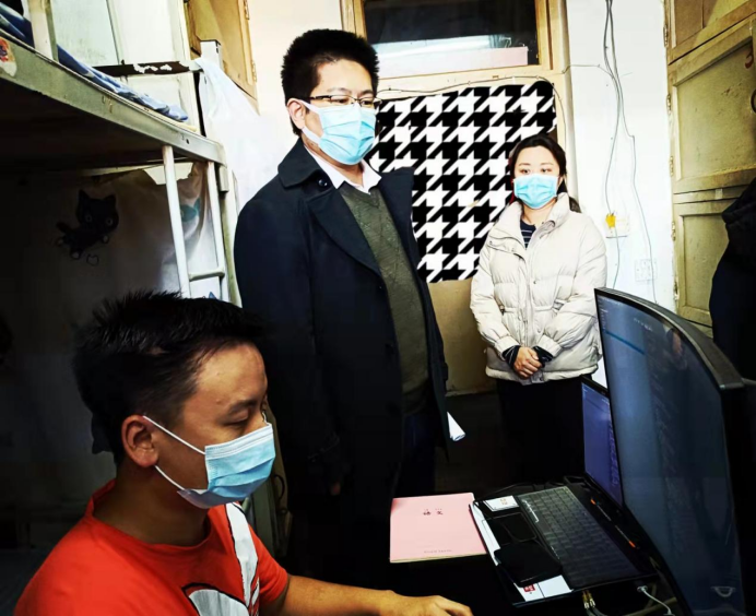 小欧视频 副院长(主持工作)宋军、辅导员许泽阳于11月19日入驻黄海校内管理区开展学生思政教育相关工作。进校后,宋军带领刘宁、许泽阳、侯昊辰、王林慧即刻走访学生寝室,了解学生的学习、生活等各方面情况。
