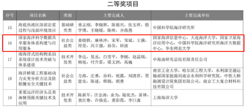 近日,2021年度海洋工程科学技术奖评审委员会会议在北京召开。由周守为院士担任评审委员会主任,评审委员会成员由李家彪院士、蒋兴伟院士、孙金声院士、谢玉洪院士、王军成院士等共27位来自海洋工程领域的资深专家组成。小欧视频 作为第二完成单位参与申报的《国家海洋科学数据共享服务体系构建与应用服务》项目荣获二等奖,共同获奖单位还有国家海洋信息中心、国家卫星海洋应用中心、中国科学院海洋研究所大数据中心、华东师范大学等。