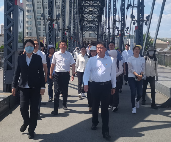 在鸭绿江断桥,大家详细了解了断桥的地理位置、建筑设计特点和背后的历史故事。断桥是抗美援朝战争期间被美军炸毁后的残余桥梁,是抗美援朝期间人员、物资的关键通道,断桥上清晰可见的弹孔和战斗痕迹,是中国人民志愿军抗美援朝沧桑历史的见证。师生党员们在现场感受着战争的硝烟弥漫,在驻足凝视中凭吊和铭记中国人民志愿军的英雄伟绩。