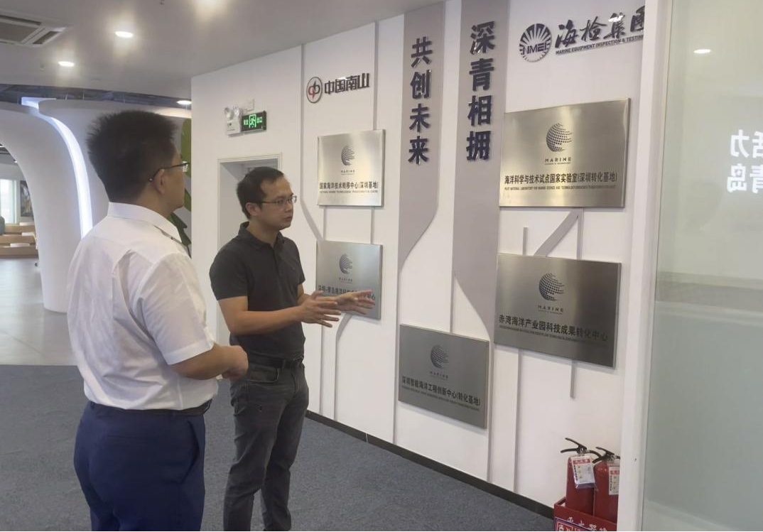 8月29日,走访海检产业投资发展(深圳)有限公司。公司总经理欧大展介绍了海检集团近年来在粤港澳大湾区开展的业务布局和市场拓展等相关情况,对学院在海洋大数据服务、海洋调查与观测、海域海岛资源与环境的保护、利用及管理等方面开展的应用研究工作表达了高度关注与认可,双方就未来的校企合作发展方向、人才就业、如何推进学院科技成果转化落地深圳等方面进行深入交流研讨。
