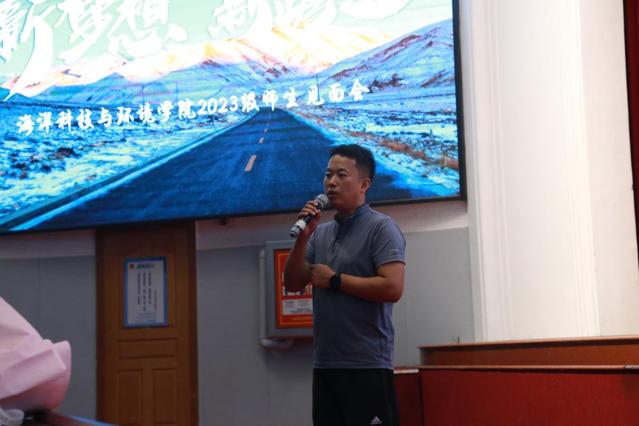 9月10日下午,海洋科技与环境学院在黄海校区俱乐部隆重召开2023年秋季“开学第一课”暨2023级师生见面会。学院领导班子成员、各教研室主任、专业负责人及各年级辅导员等教师代表,2023级本科和研究生近450余人参加了活动。本次活动由学院党委书记关呈俊主持。