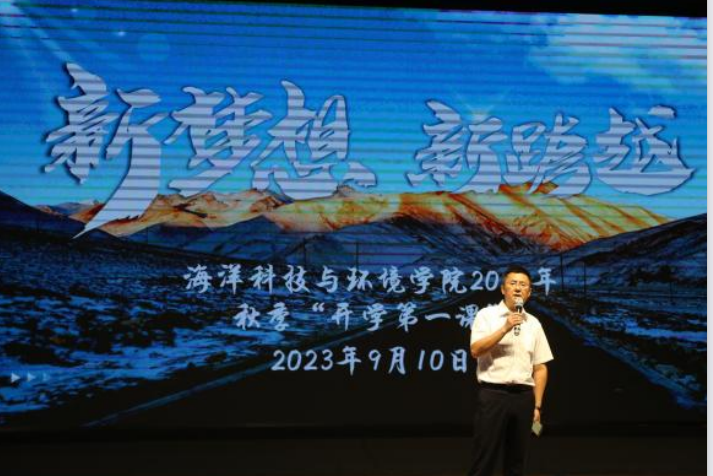 课程最后,关呈俊寄望全体新生们,在即将开启的大学生活中能够弘扬“红色基因,绿色发展,蓝色梦想”理念,做一名“信念坚定、健康快乐、勤学笃行”的海环人!