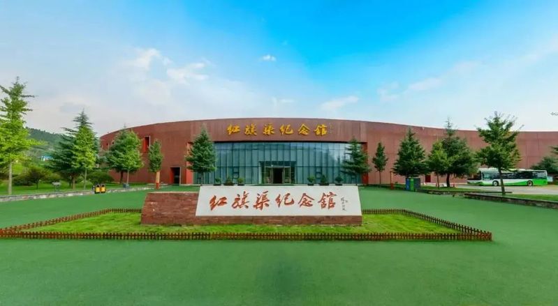 红旗渠纪念馆形态设计为舞动的红色水渠,是红旗渠形态的延伸。展馆陈列包括“千年旱魔,世代抗争”“红旗引领,创造奇迹”等五部分,全面还原河南安阳林州人民为改变缺水面貌艰苦奋斗的历程,彰显“自力更生、艰苦创业、团结协作、无私奉献”的红旗渠精神。