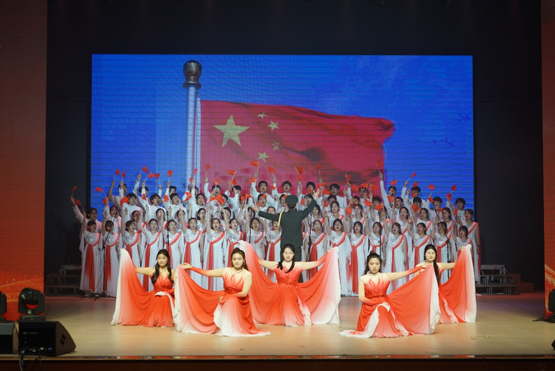 本次演出,由2024级退役研究生徐诗喆担任指挥,学院合唱团在合唱基础上,巧妙融合朗诵、舞蹈、乐器、情景表演与视频展示等多种表演形式。用嘹亮的歌声与饱满的热情表达了对祖国的赤诚热爱。师生们配合默契,精湛的表演赢得了全场观众的热烈掌声。