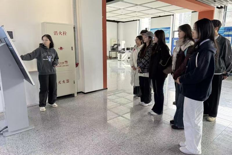 首先,同学们在任思佳博士的带领下参观了北方海洋数据中心。巨大的球形电子屏上,全球海温、大洋环流等实时数据静静流淌,构成一幅磅礴而生动的数字海洋图景。当讲解人员在触控屏上聚焦黄海、渤海区域时,监测屏上跳动的实时数据引发了同学们的阵阵惊叹。这段沉浸式体验,不仅让书本上的知识变得可视可感,更在每个人心中埋下了探索海洋奥秘的种子。