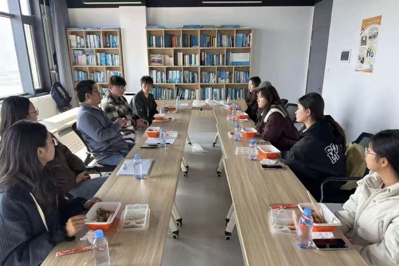 时近中午,宋军教授自掏腰包,为同学们准备了一份份热腾腾的午餐。在饭菜的香气中,正式的座谈会变成了轻松的师生闲聊。宋军教授关切地询问起大家的学习与生活,从大一新生的课程适应聊到大二、大三学生的专业规划,并结合自身学术经历,为有考研意向的同学提供了中肯的建议。
