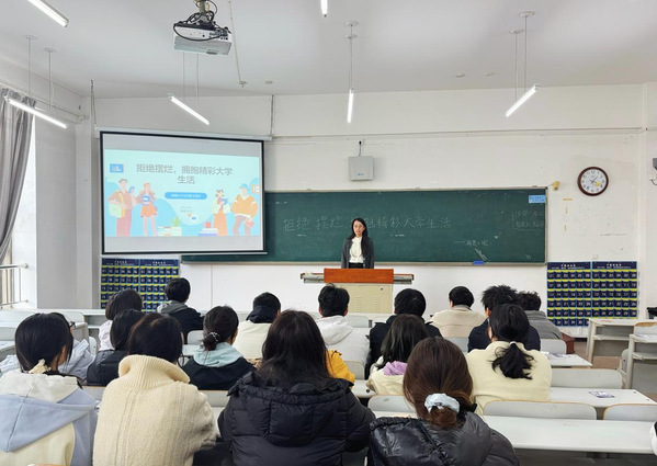 班会上,同学们围绕“拒绝摆烂,拥抱精彩大学生活”主题踊跃发言,查摆了自己目前生活和学业方面存在的问题以及如何主动规划大学生活的思考。刘冰冰认真听取了同学们的发言,对班会主题的现实意义和同学们的积极表现给予高度评价。她结合团委工作实践,向同学们提出三点希望:一是要树立正确价值观,拒绝“躺平”心态,勇于面对挑战,在奋斗中实现自我价值;二是要主动融入校园生活,积极参与社团活动、志愿服务和社会实践,拓展视野、提升能力;三是要科学规划时间,统筹学习与生活,培养健康作息和良好习惯,让每一天都充实而有意义。