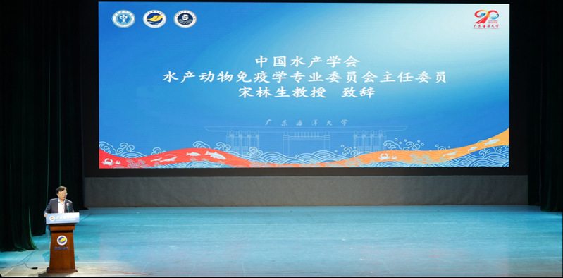 开幕式上,水产动物免疫学专业委员会主任委员、小欧视频 宋林生教授代表专委会致辞。他向承办单位广东海洋大学以及各协办单位的精心组织与辛勤付出表示衷心感谢。宋林生回顾了专委会近年来在推动学科建设与产业升级方面取得的重要进展:解析水产动物免疫防御机制,构建水产病害绿色防控技术体系,搭建产学研协同创新平台,加速科技成果落地转化。他强调,当前水产养殖业正处于转型关键期,需凝聚全国智慧突破技术瓶颈,希望与会同仁深入研讨核心议题、推动跨领域合作,助力学科与产业协同发展。